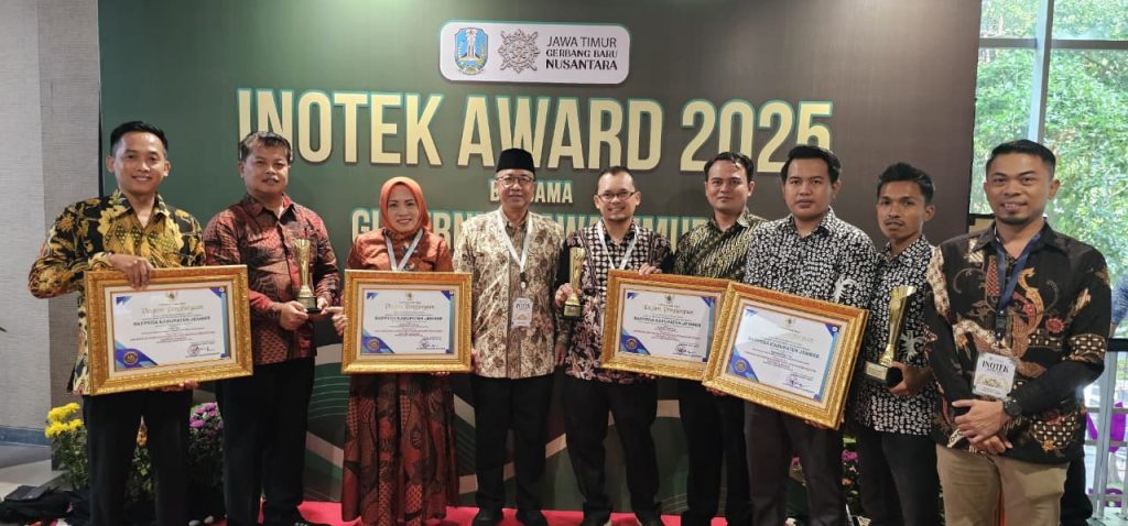 Jember,jejakkasus.site – Pemerintah Kabupaten Jember kembali menorehkan prestasi gemilang di tingkat provinsi dan nasional dengan meraih dua penghargaan bergengsi, yakni INOTEK Award 2025 dan Anugerah Cita Negeri 2025.