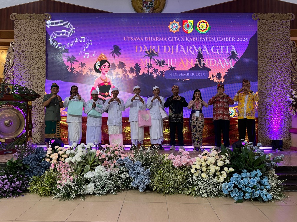 Sementara itu, Ketua PHDI Kabupaten Jember, I Nyoman Semita, menegaskan bahwa Dharma Gita merupakan nyanyian kebenaran yang menuntut pengamalan nyata, bukan sekadar penguasaan teks atau lantunan. “Ajaran Weda harus dijalankan dengan tanggung jawab, ketulusan, dan konsistensi. Nilai spiritual itu juga harus hadir dalam kontribusi sosial, pelestarian budaya, serta pengembangan pariwisata,” ujarnya.